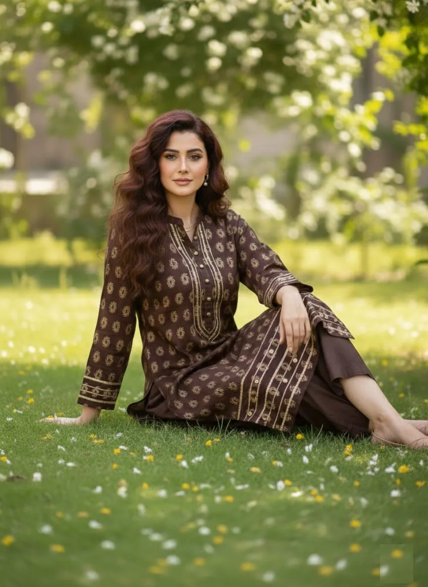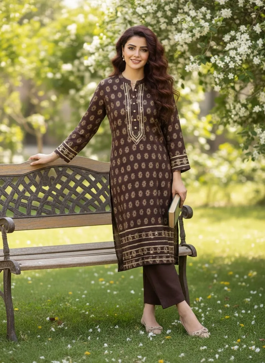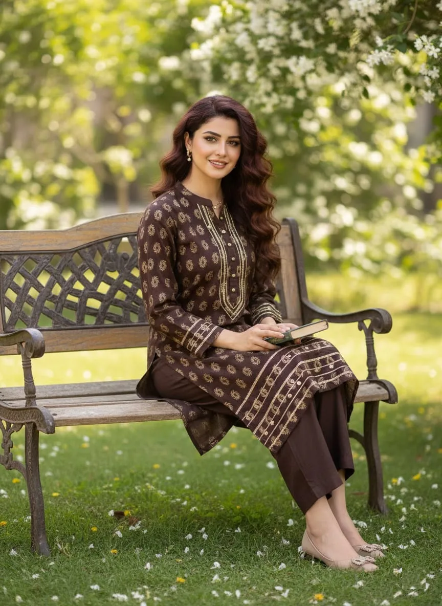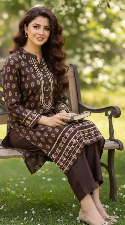 At Sairi Wardrobe, we bridge the gap between high-end designer aesthetics and everyday wearability. This Brown Jacquard Lawn suit is specifically curated for college girls seeking a trendy campus look, working women needing a sharp office outfit, and housewives who want to stay comfortable yet stylish during family gatherings.