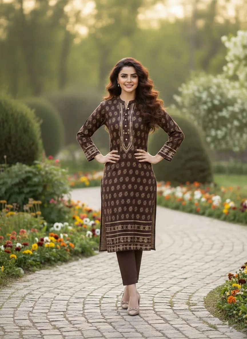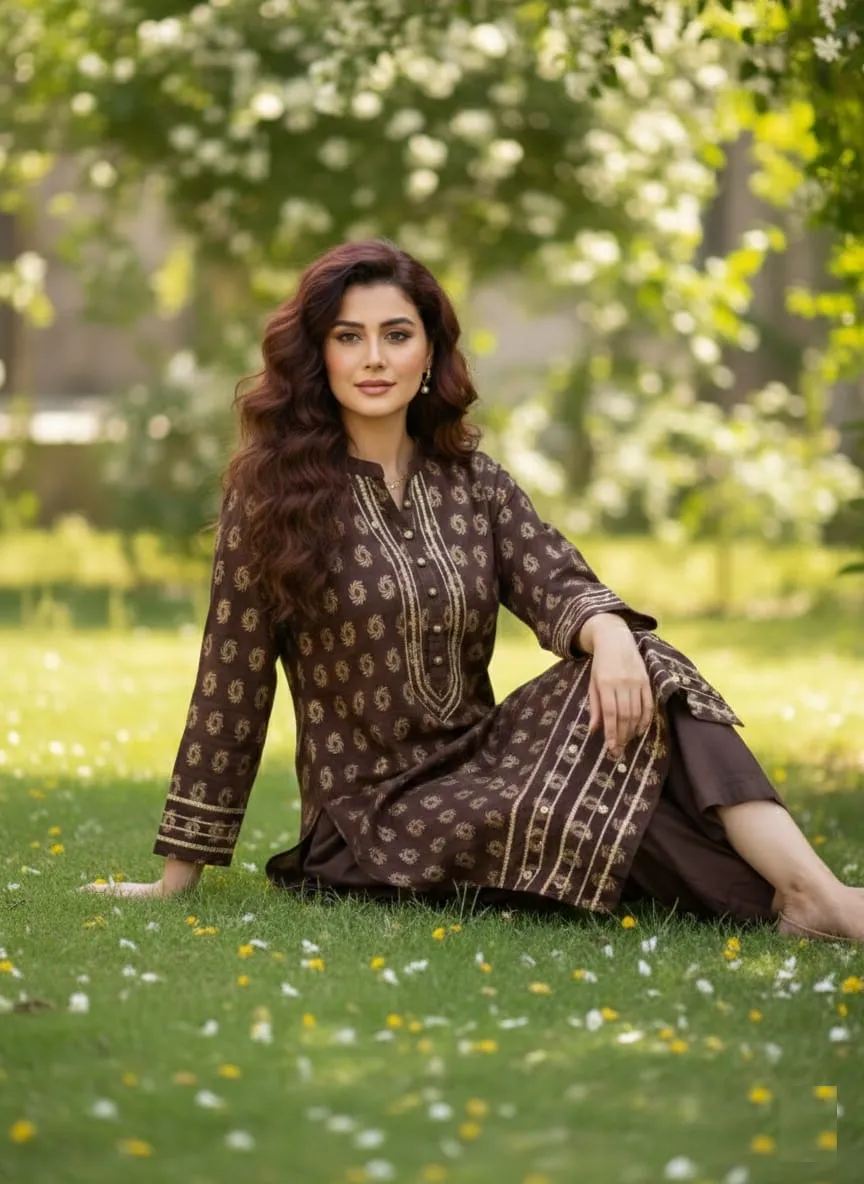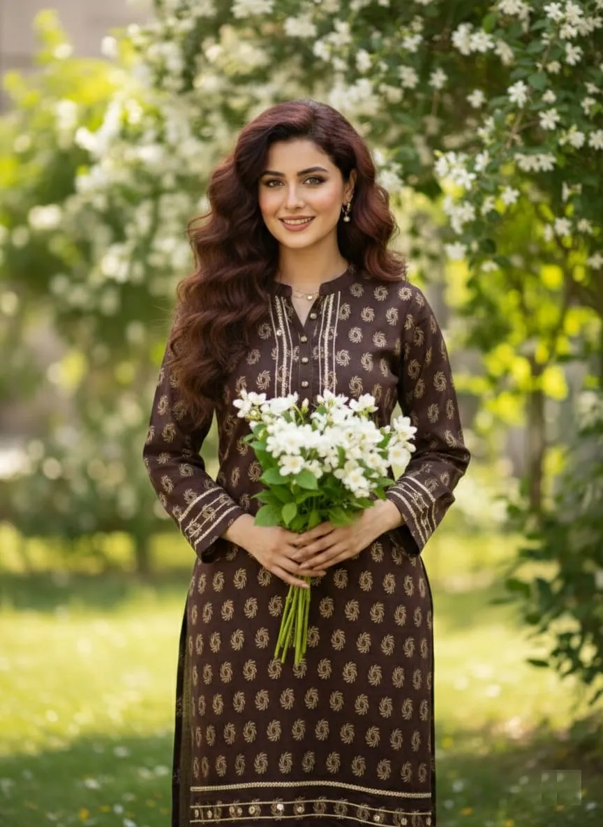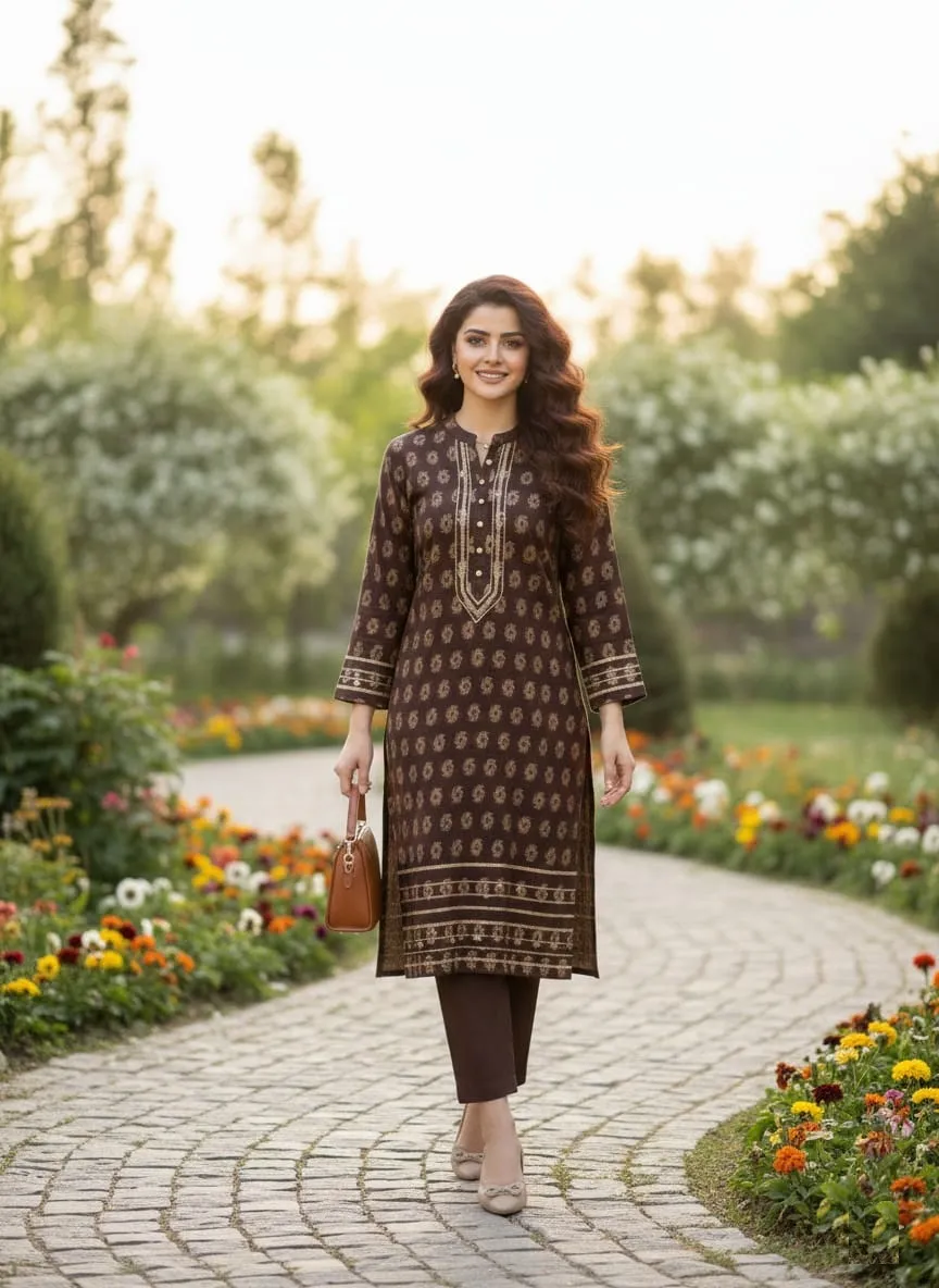 At Sairi Wardrobe, we bridge the gap between high-end designer aesthetics and everyday wearability. This Brown Jacquard Lawn suit is specifically curated for college girls seeking a trendy campus look, working women needing a sharp office outfit, and housewives who want to stay comfortable yet stylish during family gatherings.