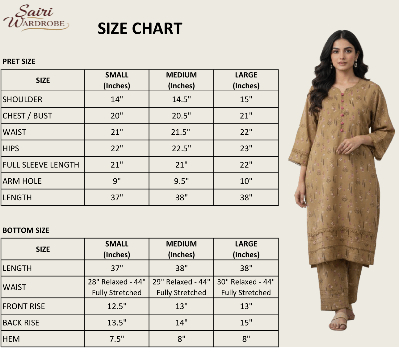 Experience the effortless sophistication of Sairi Wardrobe. Our latest “Mocha Bloom” ensemble is more than just a dress; it is a tactile journey into the world of premium Pakistani textiles, designed for the woman who carries grace in her stride. Crafted from high-grade Linen, this 2 Piece set offers a breathable, luxurious drape that feels like a second skin while maintaining a crisp, polished silhouette all day long.